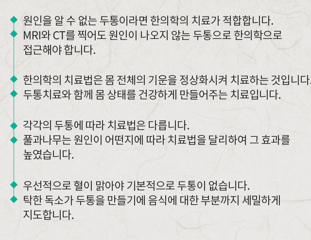 풀과나무가 한의학의 관점에서두통을 치료합니다.