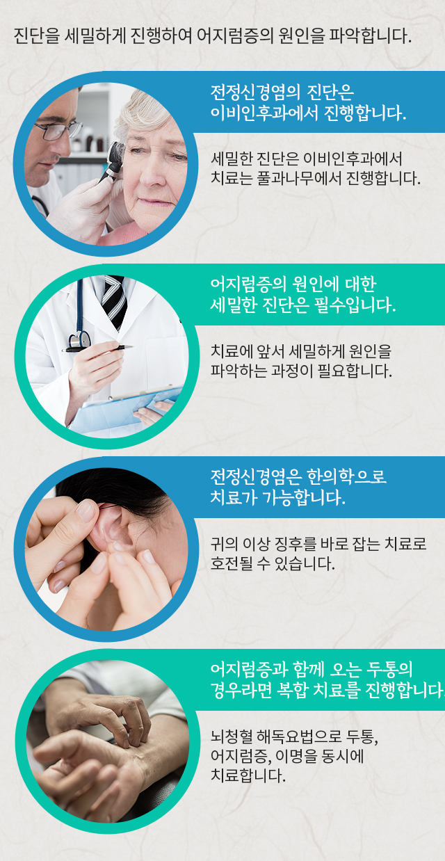 풀과나무가 전정신경염 원인에 대한세심한 진단으로 어지럼증을 없애줍니다.
