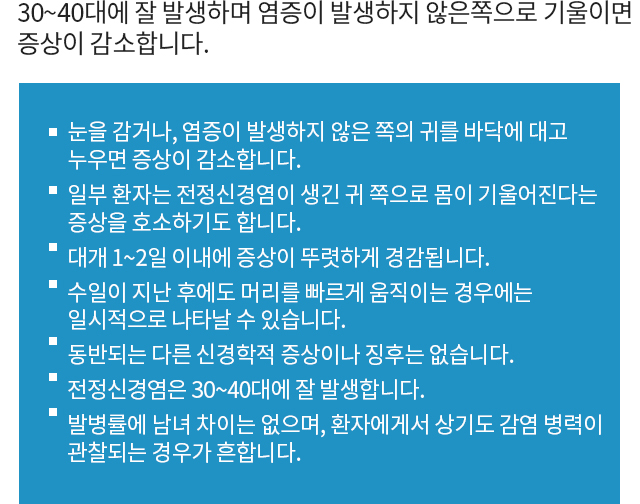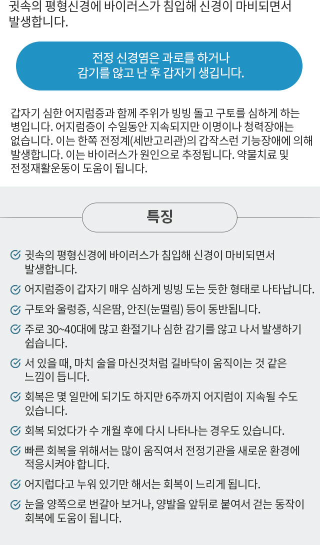 평형감각을 유지하는 전정기관에염증이 생겨 나타나는 전정신경염