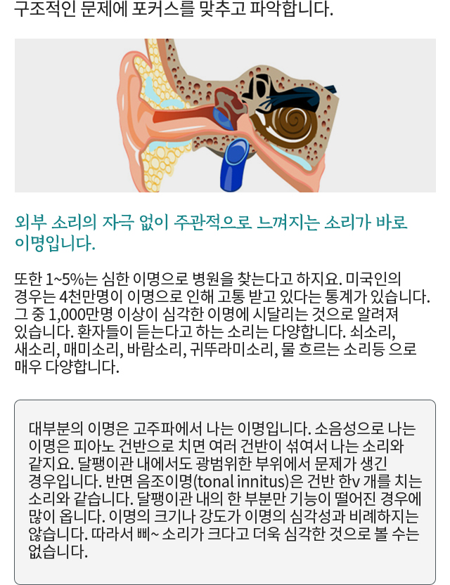 원인을 알아야이명은 치료가 가능하다.
