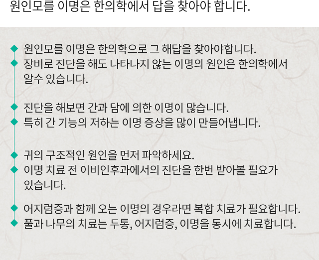 원인모를 이명은 한의학에서그 답을 찾아야 합니다.
