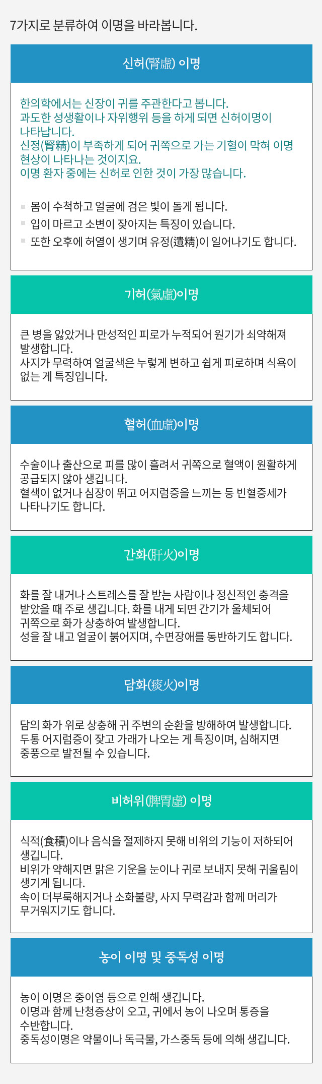 이명 > 치료 프로그램 이명 > 증상과 분류 이명 > 이명의 원인 이명 > 한의학과 이명 이명 > 이명 정보