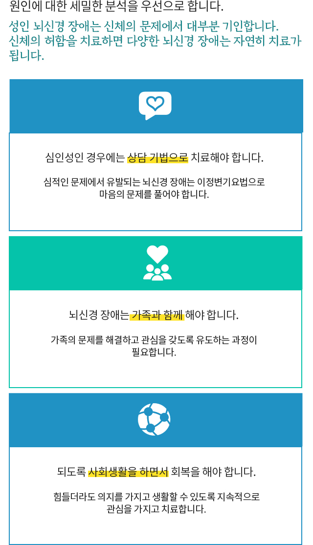 원인제거와 증상 개선에 대한 맞춤 치료법 적용마음의 문제는 몸에서 기인한다는 것을 알아야 합니다.