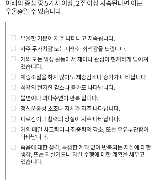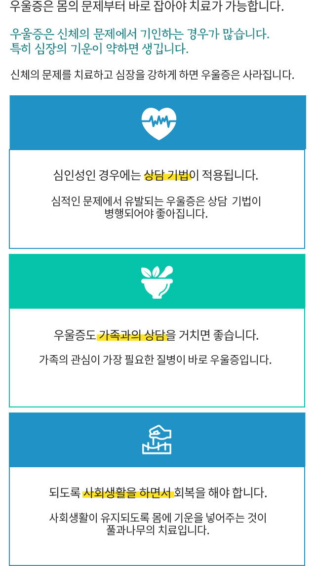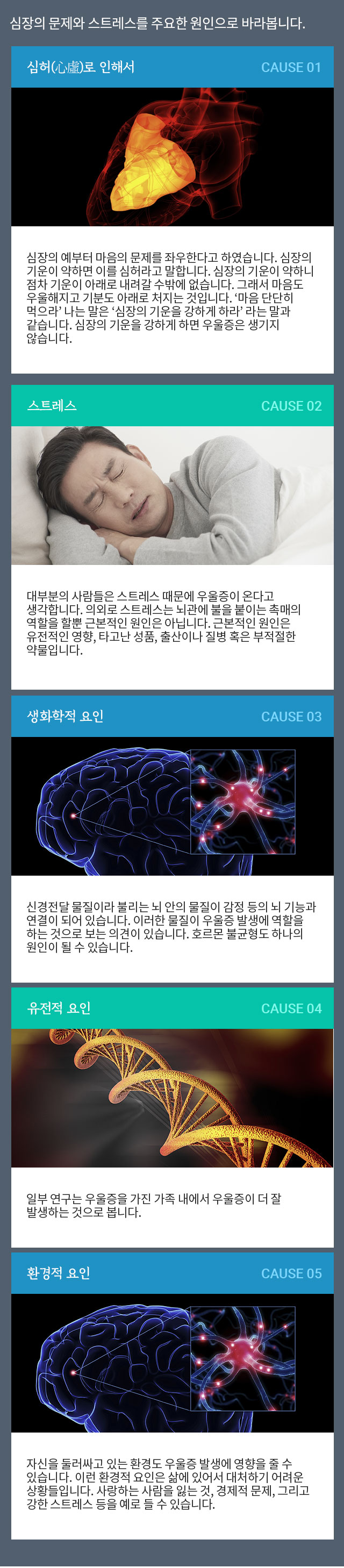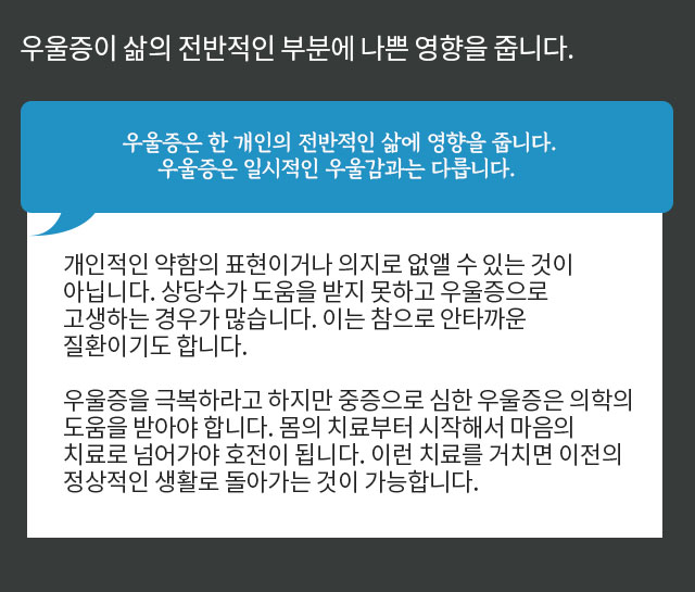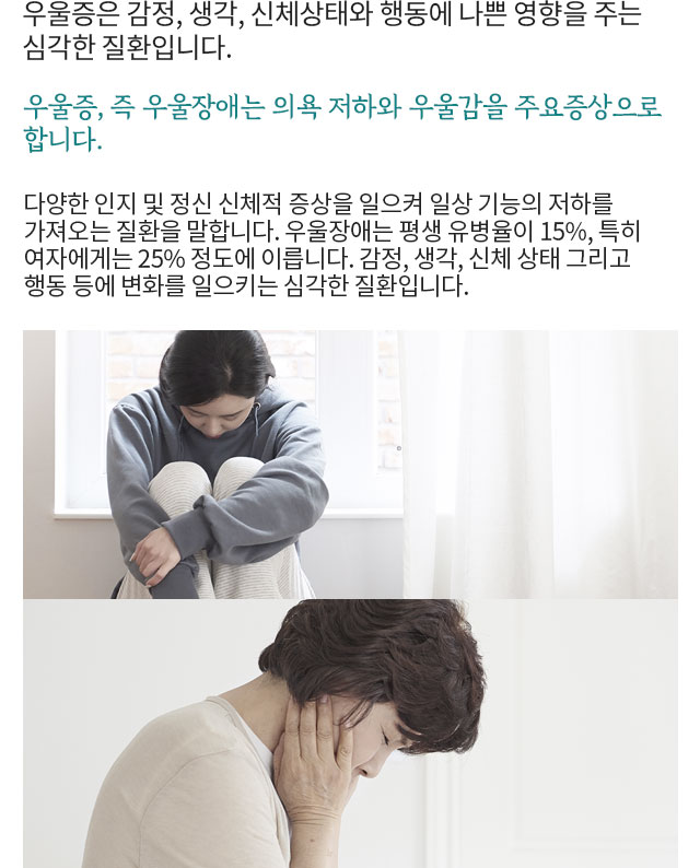 의욕저하와 우울감을 주요 증상으로 하는 우울장애극단적인 생각까지 하게 만드는 우울증, 신체의 문제로 접근합니다.