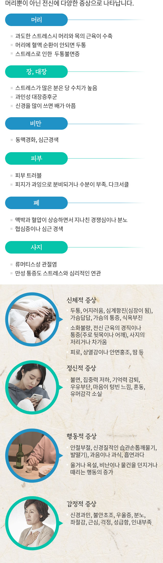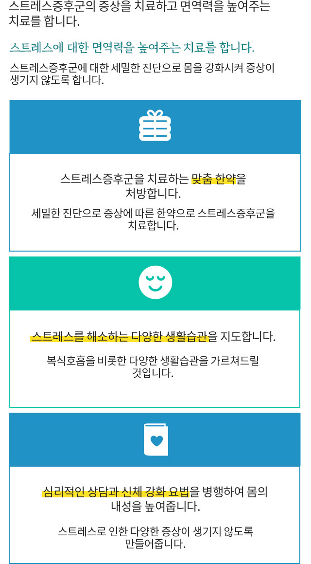 풀과나무는 스트레스증후군의 다양한 증상을 치료합니다.