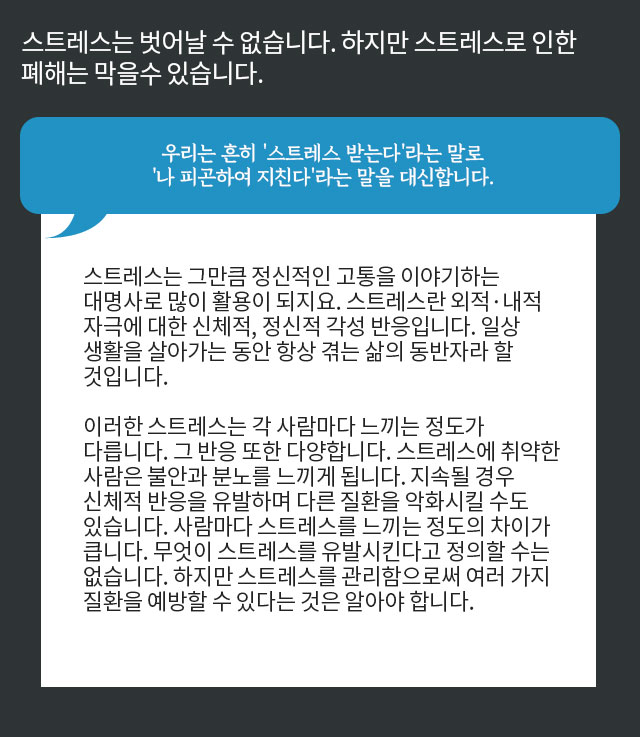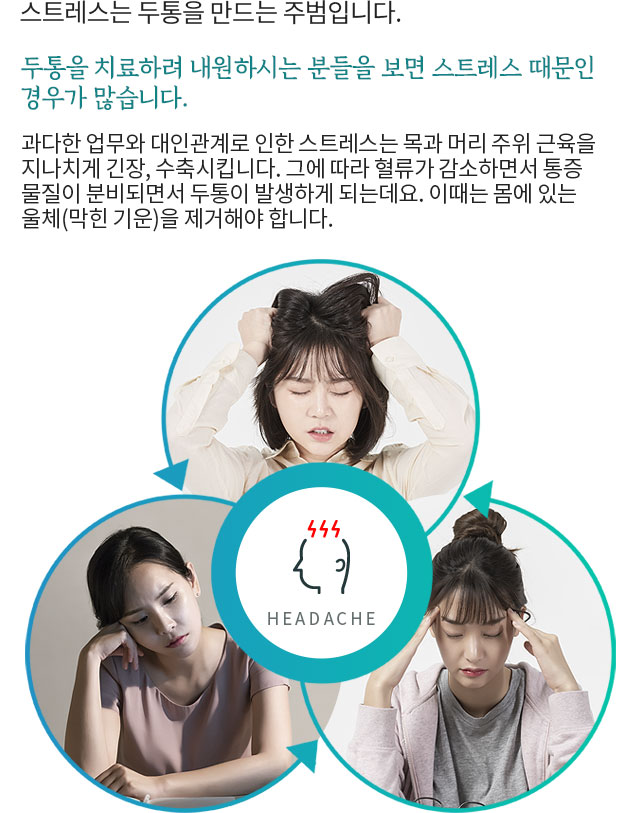 두통을 유발하는 대표적인 원인! 스트레스스트레스의 원인을 9가지로 분류하여 이에 따른 맞춤 처방으로 치료합니다.