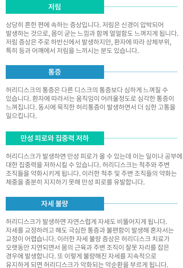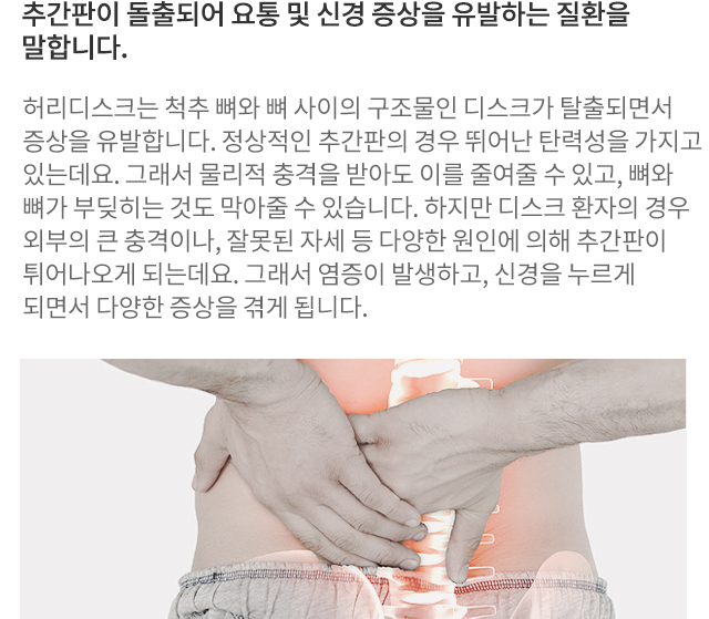 추간판이 돌출되어 요통 및 신경 증상을 유발하는 질환