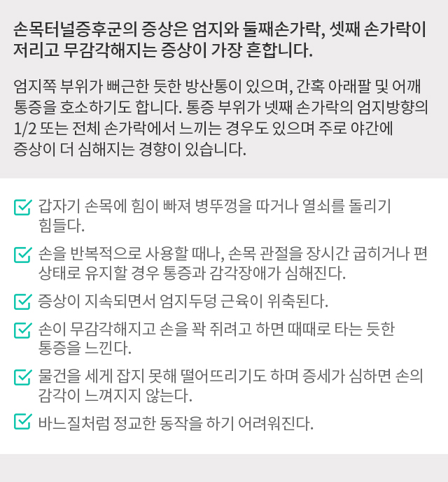 저리고 타는 듯한 통증과 손 저림, 이상 감각
