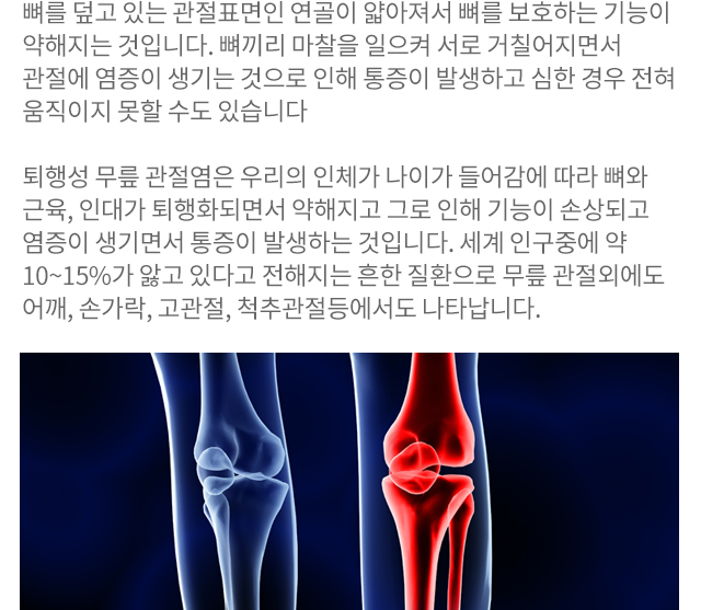 관절염은 흔히 퇴행성 관절염을 말합니다.