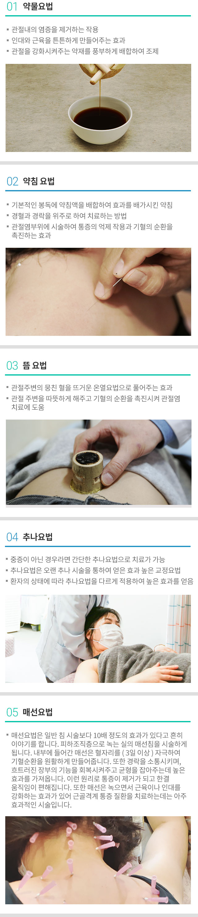 약물요법과 통증을 없애는 약침으로 치료합니다.
