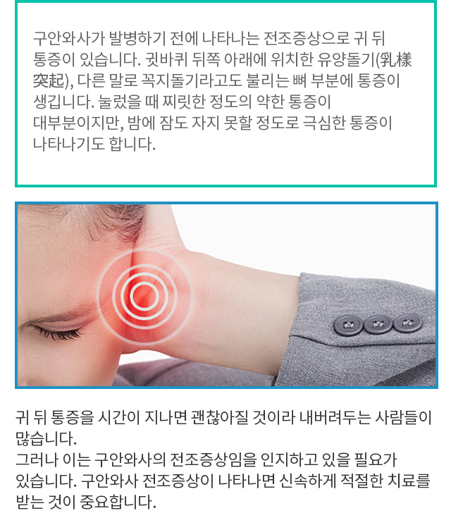 전조증상은 귀 뒤 통증입니다.