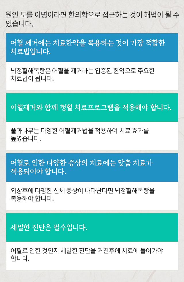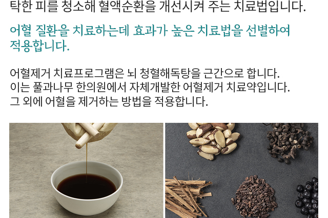 풀과나무가 어혈제거 프로그램으로건강을 다시 찾아드립니다.